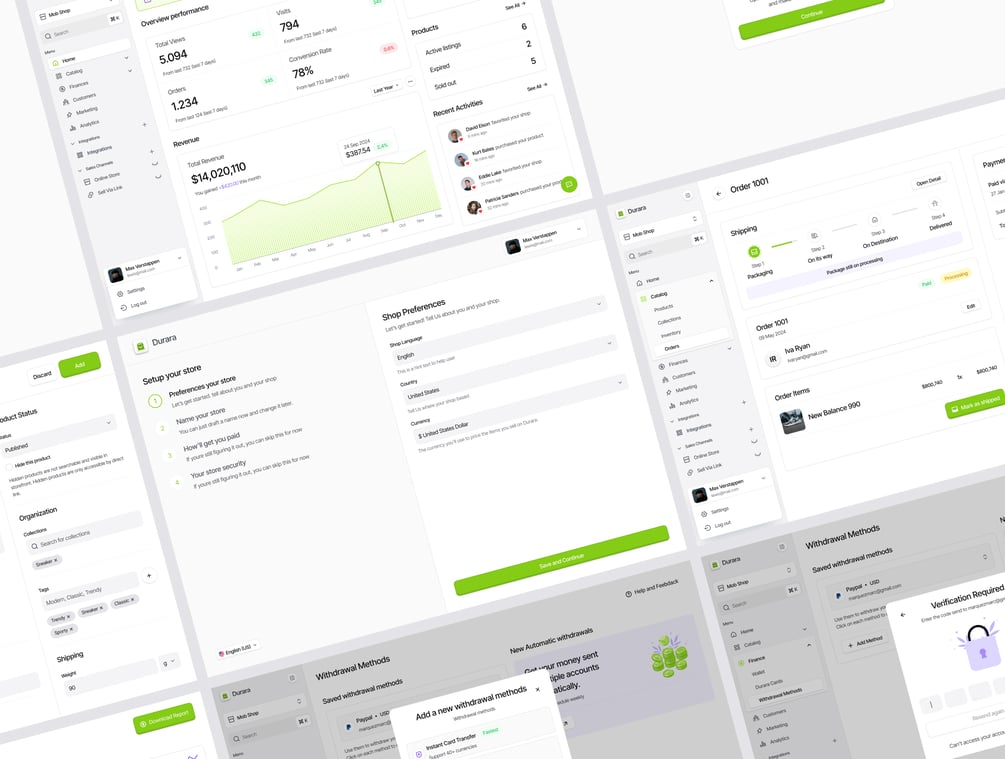 Durara is a powerful and intuitive UI Kit designed specifically for creating efficient and user-friendly e-commerce dashboards. Whether you are managing a small online shop or a large-scale marketplace, Durara provides all the tools you need to monitor sales, track inventory, manage customers, and optimize your business operations.