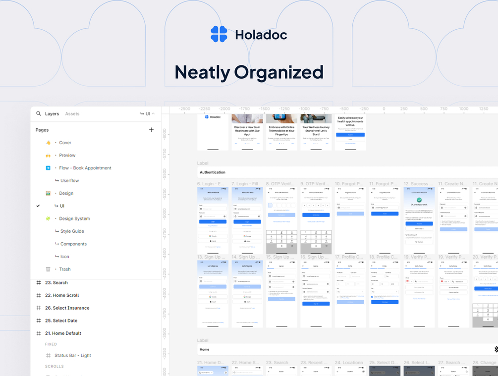 You'll get Figma file for all design of Holadoc - Healthcare UI Kit