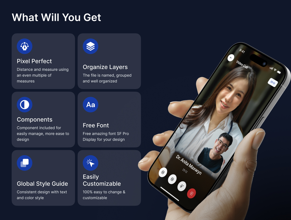 You'll get 100+ screens of Pacino - Telemedince App UI Kit